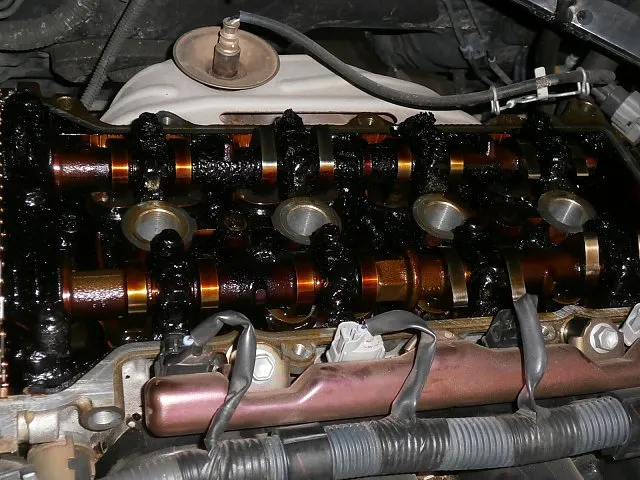 シリンダーヘッドカバーを開けてみるとへどろのようなエンジンオイルの汚れにビックリしました。エンジンオイルメンテナンスの悪さがでています。